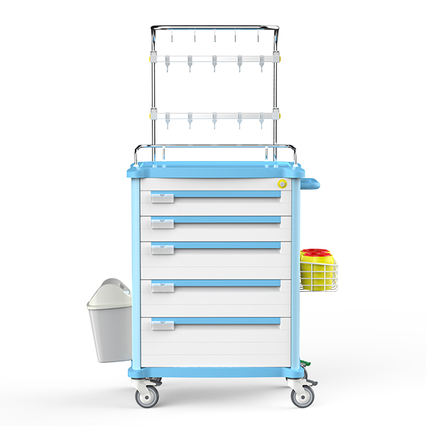 FG-E-03输液车采用五抽结构,结合专利输液挂架系统,最多支持15袋药液挂载。中控锁+缓闭滑轨保障操作安全与顺畅,满足高强度护理需求,提升输液组织与物资管理效率。