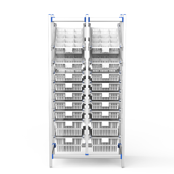 医院储存架为医院药房、供应室和医疗物流中心优化设计,适配药房(药品倾斜可视存取)、治疗室(耗材分层快取)、供应室(灭菌包预组分类),双倾斜篮可快速查看物品,而模块化设计可最大限度地提高存储密度。在不平坦的地板上稳定,适用于高流量的临床环境。