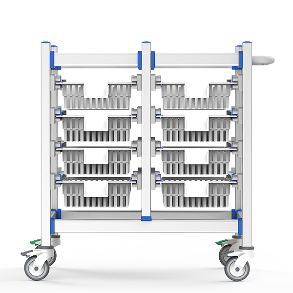 适用于门诊输液室(药剂快速分拣)、急诊抢救区(耗材机动补给)、病房(静音夜间巡房)及日间手术室(器械灵活周转),安全地储存和运输医疗器械、药物和用品,满足高频移动、精准定位及严苛院感管控需求,通过卫生、模块化和以移动性为中心的设计提高了工作流程效率。