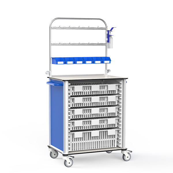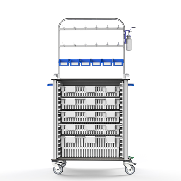 发药配液台车专为医院发药室、治疗室、处置室及临床配液区设计,支持药液调配、物资分类。适用于多瓶药液挂放、耗材管理及用药准备环节,有效减少往返取物与交叉污染。可扩展为配液台车、临时治疗车或药房操作台,满足多科室护理与药品管理需求,助力医疗空间的高效流转。