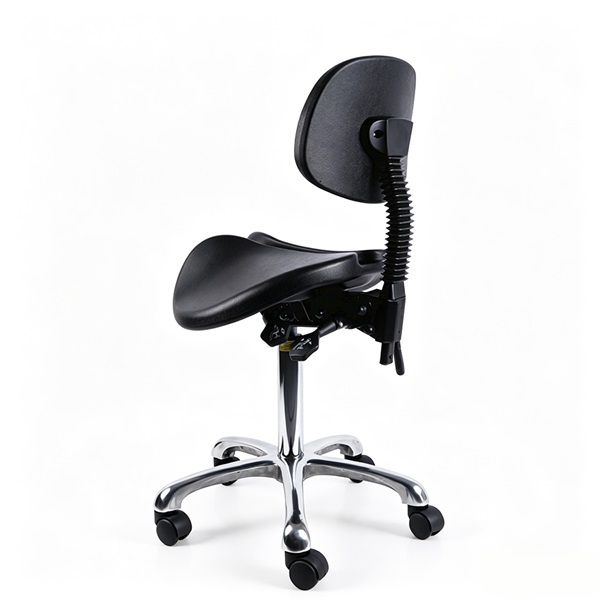 FG181152 医用靠背马鞍椅采用人体工学马鞍型座面设计,搭配 PU 聚氨酯发泡一体成型座面与高强度铝合金五星椅脚,集成椅背上下调节、椅背倾仰调节、座垫倾仰调节多维度调节系统,兼顾医疗场景的舒适支撑、感控适配性与结构耐用性,有效缓解医护人员长时间坐姿作业的腰颈劳损,适配多场景医疗操作需求,全面满足高消毒、高频使用的医用标准。